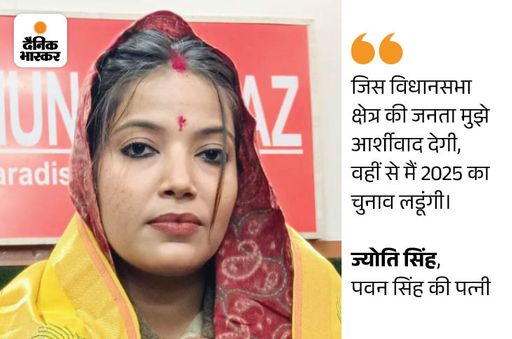 विधानसभा चुनाव लड़ने का दावा कर चुकी हैं ज्योति सिंह पवन सिंह की पत्नी ज्योति सिंह कई दफा यह दावा कर चुकी हैं कि वो 2025 का बिहार विधानसभा चुनाव लड़ेंगी। वो काराकाट विधानसभा सीट से अपनी दावेदारी लगातार ठोक रही हैं। हालांकि, ज्योति सिंह किस पार्टी से चुनाव लड़ेंगी ये अब तक उन्होंने साफ नहीं किया है।