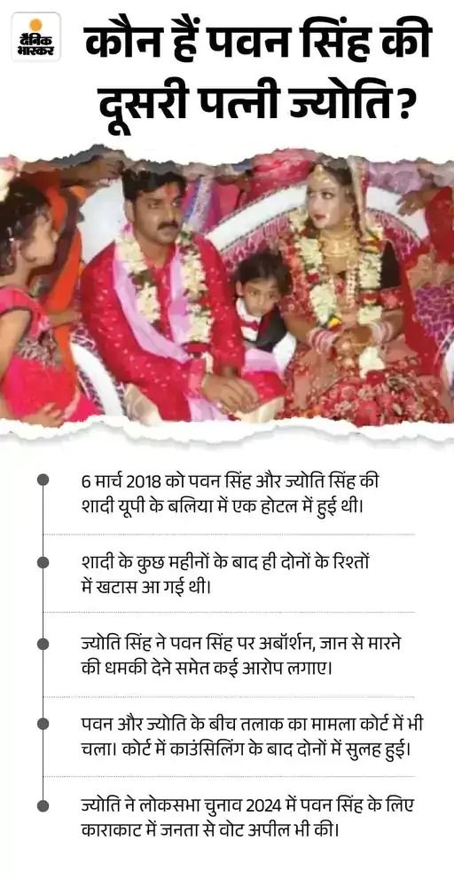 हालांकि, शादी के कुछ महीनों बाद ही दोनों के रिश्तों में खटास आ गई। ज्योति सिंह ने पवन पर कई गंभीर आरोप लगाते हुए कोर्ट का दरवाजा खटखटाया था। इसके बाद फैमिली कोर्ट में तलाक की अर्जी भी दाखिल की, लेकिन कोर्ट में काउंसिलिंग के दौरान दोनों एक साथ रहने को सहमत हो गए। इसके बाद कई तस्वीरें पवन सिंह और ज्योति सिंह की सामने आई।